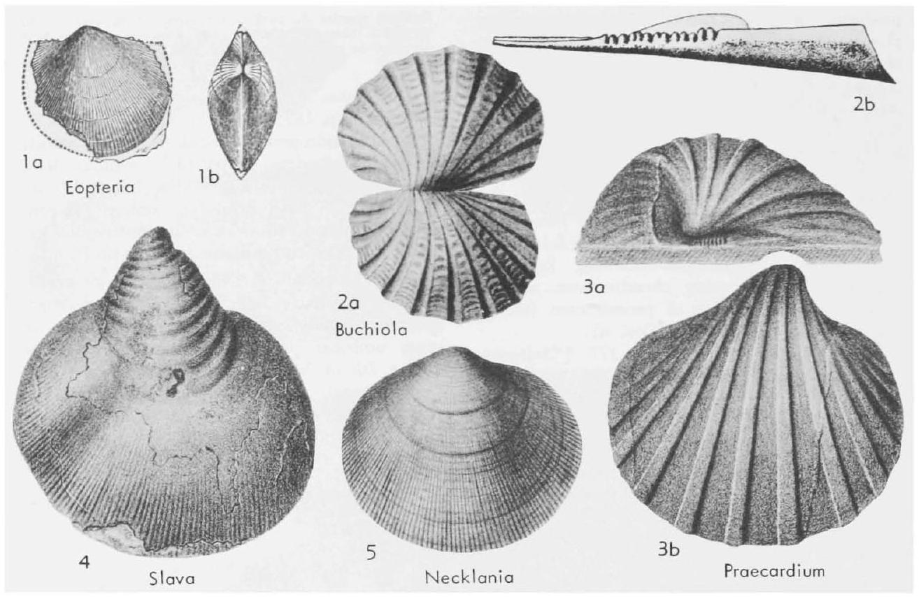 Fig. B2, 1. E. richardsoni (BILLINGS), L.Ord.(Quebec Gr.), St. Antoine, Que.; la, LV ext.; Ib, dorsal VIew both valves; both Xl (52)