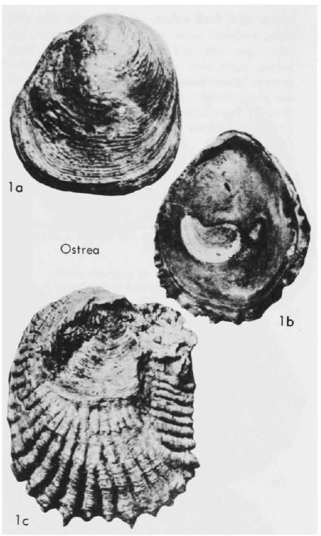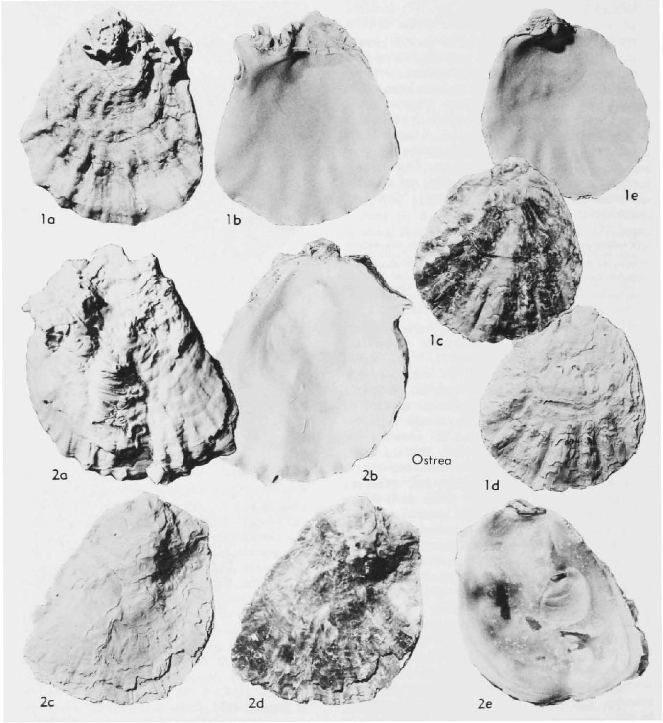 Medium-sized to large (to 18 em. high and 20 em. long), variable outline, but average shells tending to be roughly orbicular with hardly prominent umbones obtusely pointed and Banked by small to very large auricles or lacking them, posterior auricle, if present, much larger than anterior one. Width about 0.25 of height, resulting in rather Bat shell. RV Bat to gently convex, covered by many fragile Battish conchiolinous growth squamae, peripheral conchiolin fringe extensive (up to 1.5 em. wide), so that calcareous part of RV is much smaller than that of corresponding LV, as conspicuous as in some fossil bivalved specimens. Concentric undulations absent or present, never conspicuous on RV. LV slightly convex, hardly ever deeply cupped, covered by many long unequal rounded radial ribs interrupted by freestanding frilled delicate growth squamae less abundant than those on RV; some concentric undulations present. Although radial rib patterns differ much from species to species, no hyote spines are developed on them. Ligamental areas commonly longer than high, forming triangles of long base lines. Chomata always present, but differing in prominence from species to species, few (4 or 5) in some, inconspicuous and tuberculiform (see Fig. JIB), abundant and conspicuous in others, forming elongate ridgelets (see Fig. J31) arranged all around periphery. Adductor-muscle imprint reniform; both ends well rounded, with length about 4 times height; more centrally located than in other genera. LV mostly without umbonal cavity. Typical species tend to have large round flat shells with flat commissures, whereas others have small vertically elongate shells with twisted or irregularly plicate commissure. [Genus is incubatory. Diagnostic features are outline and position of adductor muscle, chomata, Hattish shape of shell, absence of umbonal cavity, and different ornamentation of opposing valves.) [Thne is some confusion concerning the type species of Anodontostua SUTER., 1917. SUTEIl was under the impres· sian that the New Zealand oyster's name: was Ostrea angasi $oWERBY (recte angassi). which he listed as the first species under Anodontostrea. It now appears (HOLLIS, 1963, p. 2·8) that name: rather refers to the: closely similar 50mh Australian oyster, whneas the: New Zealand oyster is to be called O. lutraria HUTTON, 1873.]