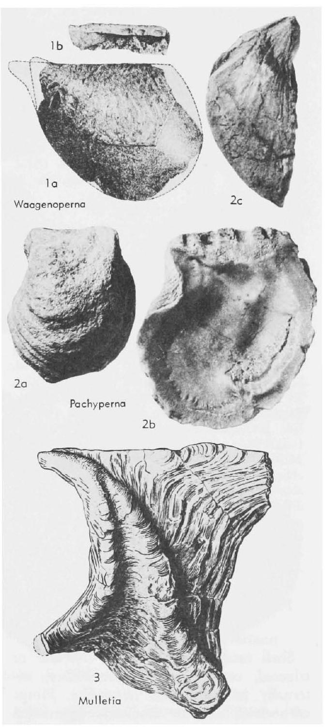 Fig. C52, 1. *W. lateplanata (Waagen), U.Trias., Japan, la,b, LV ext. and ligamental area, X0.85 (950).
